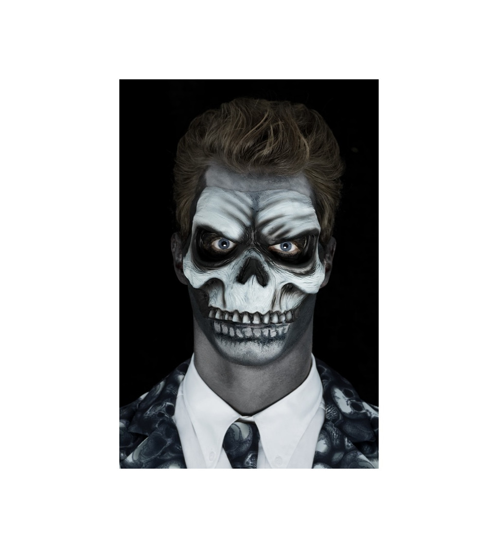 A csontváz ragasztós maszk tökéletes kiegészítő halloweenre vagy karneválra. Ez az arcfél maszk garantáltan feldobja a te ijesztő jelmezed és garantáltan sikert arat minden buliban!
