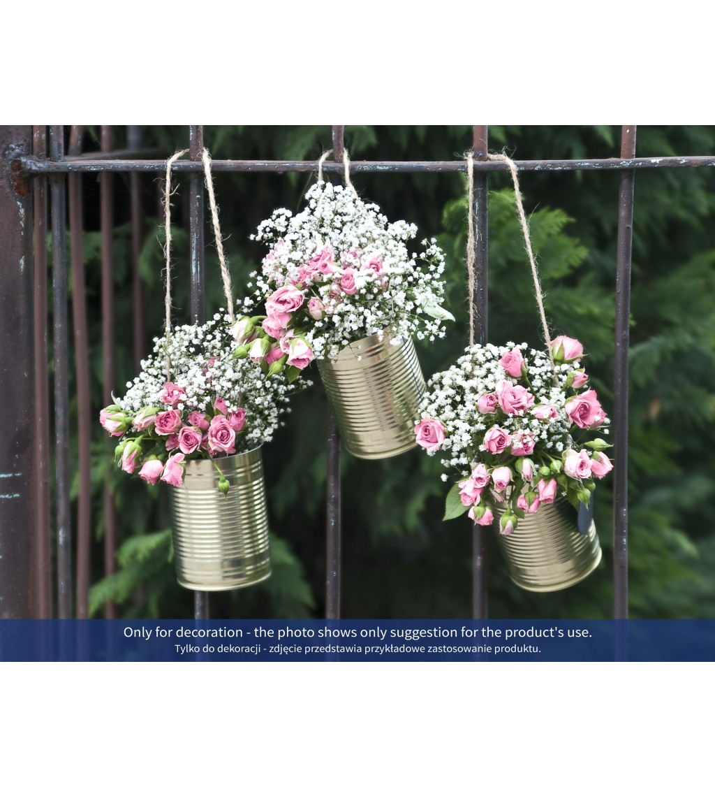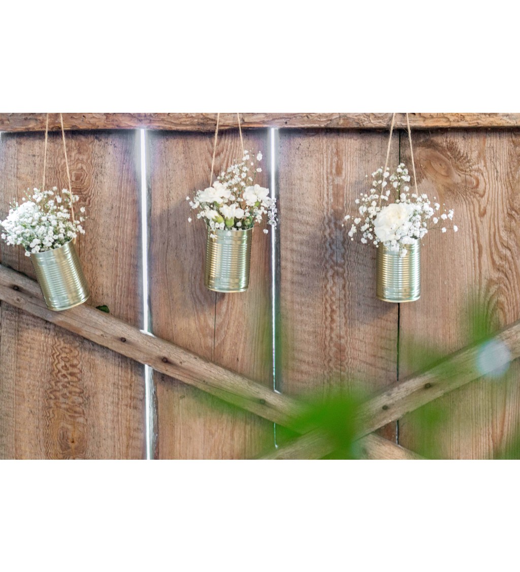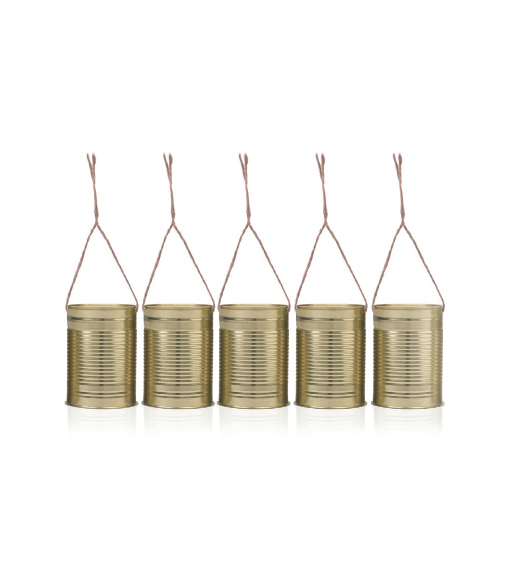 5 darabos arany dekorációs fémdoboz-szett jutazsinórral. Tökéletes esküvői vagy alkalmi dekorációhoz. Mérete: 10 x 7 cm. Akasztható dizájn, ideális lakásdekorációhoz, ünnepségekre vagy autós díszítésre.