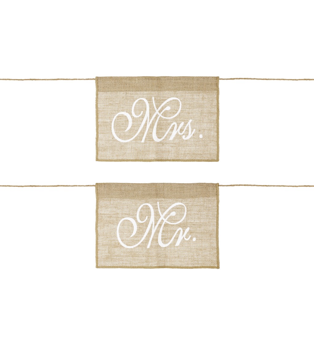 Esküvői székjelölő táblák Mr és Mrs felirattal. Ez a kiegészítő tökéletes dekoráció az esküvői lakomához. A csomag 2 darabot tartalmaz.